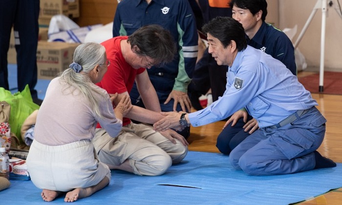 ด้านนายกรัฐมนตรีชินโสะ อาเบะ ของญี่ปุ่น ได้จัดประชุมที่ศูนย์บริหารสถานการณ์ฉุกเฉิน โดยย้ำให้เจ้าหน้าที่ทำงานอย่างเต็มที่ และต้องเร่งแข่งกับเวลา เพื่อช่วยชีวิตประชาชน แต่การประเมินจำนวนผู้เสียชีวิตหรือได้รับบาดเจ็บยังคงทำได้ยากลำบาก เนื่องจากพื้นที่ได้รับผลกระทบเป็นวงกว้าง ทั้งจากฝนที่ตกต่อเนื่อง น้ำท่วมสูง รวมถึงดินถล่ม ซึ่งทางการยังคงเตือนความเสี่ยงเหตุดินถล่มที่อาจเกิดขึ้นเพิ่มเติม ตัวเลขผู้เสียชีวิตจากภัยธรรมชาติครั้งล่าสุดนี้มากกว่าเหตุน้ำท่วมใหญ่และดินถล่มที่เมืองฮิโรชิมา เมื่อปี 2557 ซึ่งมีผู้เสียชีวิต 77 ราย