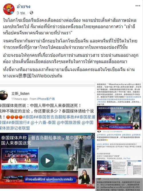 แต่ไม่ใช่เพียงสื่อจีนเท่านั้นที่ไม่พอใจกับคำพูดนี้ ในโลกโซเชียลจีนก็เดือดด้วยเช่นกัน โดยเพจ “อ้ายจง” ได้สรุปดราม่าในโซเชียลจีนเป็นรอบสุดท้ายด้วยว่า คนจีนในโลกโซเชียลจำนวนหนึ่งซึ่งก็มากพอควร ดราม่าจากการให้สัมภาษณ์ของรองนายกฯ ประวิตร โดยเขาไม่พอใจตรงประโยคที่ว่า “จีนทำจีนเอง เรื่องของเขา เขาไม่ได้ดราม่าเรื่องการทำงานของทางการไทย โดยส่วนใหญ่ที่ดราม่าจะดราม่าไปที่ตัวบุคคล แต่ก็มีจำนวนหนึ่งที่เหมารวมหมด เนื่องจากอารมณ์โมโห และมันก็เป็นความคิดของแต่ละคนที่มีมุมมองต่อเรา ซึ่งเราไม่สามารถไปห้ามความคิดใครได้ และดราม่าอีกบางส่วน สืบเนื่องจากคำสัมภาษณ์ คือต้องการรู้ความจริงว่า “สุดท้ายแล้ว ทำไมเรือออกไปได้ เพราะมีบางสื่อออนไลน์ในจีนระบุว่า ณ ตอนออกเรือ เป็นธงเขียว คือออกเรือได้” หลังจากรองนายกฯ ประวิตรออกมาขอโทษ ก็มีบางส่วนที่เข้าใจ แต่บางส่วนก็ยังคงดราม่าเป็นกระแสในโลกโซเชียลจีน จนทำให้คำค้นหา “รองนายกฯ ไทยขอโทษ” ติดคำค้นยอดฮิตในเวยป๋อ (Weibo) อยู่ประมาณ 1 ชั่วโมง
