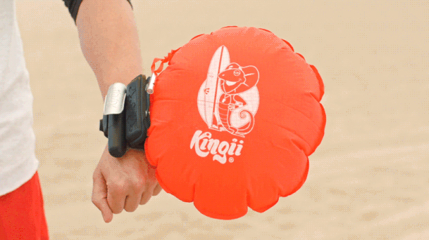 นี่คือนวัตกรรมเสื้อชูชีพที่อยู่บนข้อมืออย่าง Kingii หรือนาฬิกาข้อมือชูชีพ ผู้ผลิตเรียกมันว่า ชูชีพที่มีขนาดเล็กที่สุดในโลก ถ้ามองดูเผินๆจะคิดว่า มันคือนาฬิกาข้อมือกันน้ำสีดำธรรมดา แต่จริงๆแล้ว หากเกิดอุบัติเหตุหรือหากคุณต้องการความช่วยเหลือขณะอยู่ในน้ำ ไม่ว่าจะเป็นตะคริว ว่ายต่อไม่ไหว หรืออุบัติเหตุใดๆก็แล้วแต่ เพียงแค่เปิดวาล์วปล่อยลมที่ตรงข้อมือ ก๊าซคาร์บอนไดออกไซด์ที่ถูกเก็บอยู่ในหลอดขนาดเล็กจะถูกส่งตรงเข้าไปที่ชูชีพที่เชื่อมติดกับนาฬิกาข้อมือ จากนั้น มันจะกลายเป็นข้อมือชูชีพ พาตัวเราลอยขึ้นเหนือน้ำได้ทันที