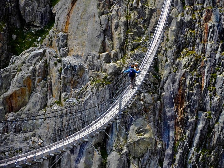 สะพานทริฟต์แห่งนี้ตั้งอยู่ที่เมืองเบิร์น ประเทศสวิตเซอร์แลนด์ ถือได้ว่าเป็นสะพานแขวนที่ยาวที่สุดในเทือกเขาแอลป์ ซึ่งถูกออกแบบอย่างเรียบง่าย มีระยะทางทั้งหมด 170 เมตร ที่ความสูง 100 เมตร สะพานทอดยาวเหนือทะเลสาบ Triftss ใกล้กับ Gadmen ประเทศสวิตเซอร์แลนด์ ซึ่งเป็นสถานที่ที่นักปีนเขานิยม สะพานทริฟต์มีผู้เข้าชมมากกว่าสองหมื่นรายต่อปี เพื่อมาดูธารน้ำแข็งทริฟต์ สะพานแห่งนี้ถูกก่อสร้างเมื่อปี 2547 โดยบริษัทพลังงานแห่งหนึ่ง เพื่อใช้ในการดำเนินงานระหว่างธารน้ำแข็ง
