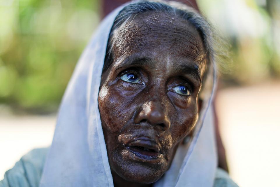 28.Gultaz Begum ผู้ลี้ภัยชาวโรฮิงญาเล่าว่าเธอหนีจากพม่าพร้อมลูกทั้ง 7 คนหลังจากที่ถูกยิงเข้าที่ตา เธอเป็นผู้ป่วยอพยพที่เข้ารับการรักษาที่เมืองโรงญาในโรงพยาบาล Sadar ใน Cox's Bazar ประเทศบังคลาเทศ เมื่อวันที่ 28 กันยายน 2017 เธอกล่าวว่าสามีของเธอถูกสังหารและหมู่บ้านของพวกเขาถูกไฟไหม้