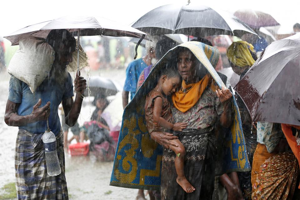 48.ผู้ลี้ภัยชาวโรฮิงญาพยายามที่จะหลบฝนจากฝนที่เกิดฝนตกขณะที่พวกเขากำลังถือครองโดยชายแดนบังคลาเทศหลังจากข้ามพรมแดนจากพม่า 31 สิงหาคม 2017