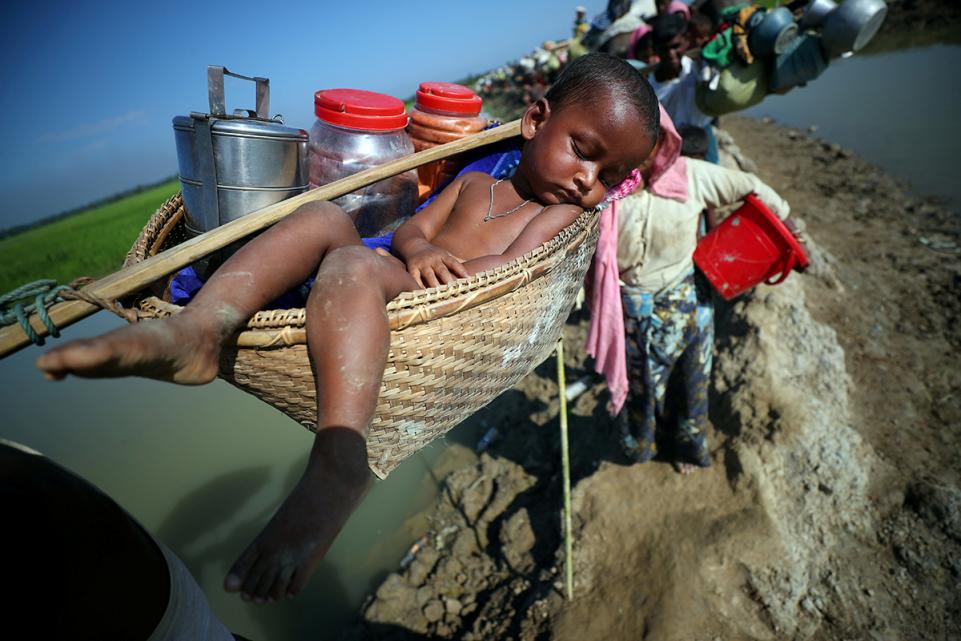 สำหรับวิกฤติผู้อพยพชาวโรฮิงญาในพม่า มีชาวมุสลิม หรือชาวชาวโรฮิงญา เกือบ 700,000 คน ต้องอพยบหนีจากพม่า เพราะถูกละเมิดสิทธิมนุษยชนจากคนพม่าที่เป็นชาวพุทธ โดยพวกเขาได้อพยพไปยังบังคลาเทศตั้งแต่วันที่ 25 สิงหาคม พ.ศ. 2560 เมื่อกองทัพเริ่มปฏิบัติการกวาดล้างชาวโรฮิงญา