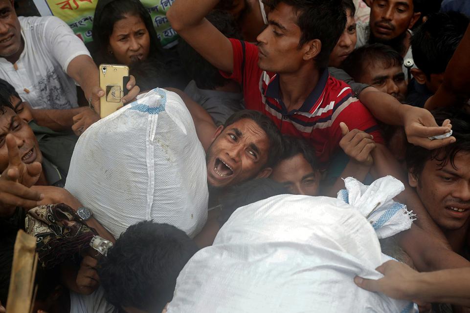 47.ผู้ลี้ภัยชาวโรฮิงญา ขณะแย่งชิงความช่วยเหลือในค่ายใน Cox's Bazar, Bangladesh, 19 กันยายน 2017