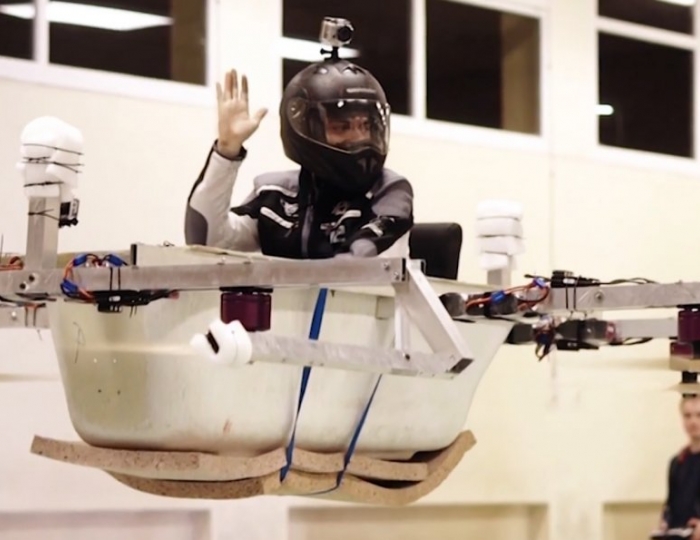 อ่างอาบน้ำบินได้นี้ โดยใช้ระบบการบินไม่ต่างจากการบินโดรน และควบคุมด้วยรีโมต พวกเขาทดลองบินภายในโรงยิม โดยที่อ่างบินได้นี้สามารถบินได้ที่ความสูงสูงสุด 30 เมตร และได้รับการอนุมัติจากทางการเยอรมันก่อนเริ่มประดิษฐ์เรียบร้อยแล้ว