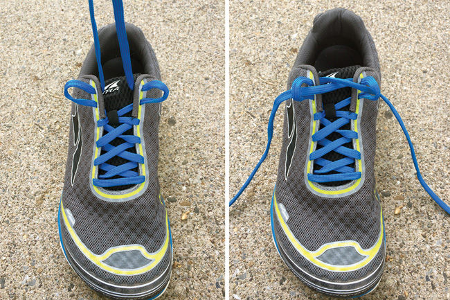 3.ดึงปลายเชือกลงให้ตึง จากนั้นดึงขึ้นเพื่อผูกเชือกตามปกติ รองเท้าของคุณก็จะแน่นขึ้น ปกป้องส้นเท้าได้มากขึ้น