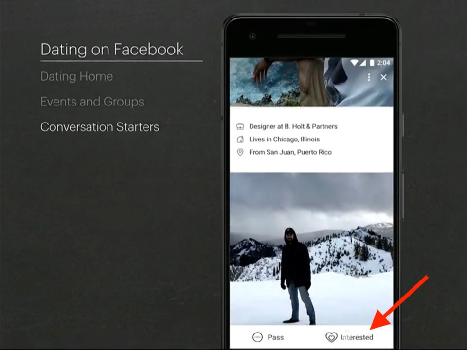 คำถามสำคัญก็คือ แล้ววิธีเริ่มคุยกับคนที่เราสนใจล่ะ จะต้องทำอย่างไร คุณสามารถคลิกที่ปุ่มขวาล่าง คำว่า “interested” ได้เลย ณ ตอนนี้ยังไม่เป็นที่แน่ชัดว่า จะมีปุ่มปัดซ้ายขวาเหมือน Tinder หรือไม่ แต่ที่แน่ๆ มีคำว่า Interested ซึ่งก็คือ สนใจ และ Pass หมายถึง ไม่สนใจ