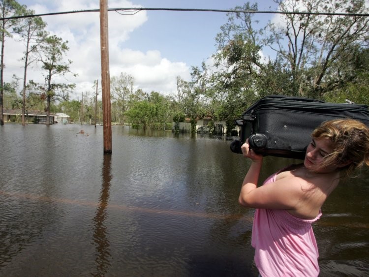 (หนึ่งในผู้ประสบภัย Katie Guillot วัย 13 ปี พยายามออกจากเมือง Crown Pointe ที่รัฐหลุยเซียนา หลังโดนเฮอร์ริเคนริตาถล่ม เมื่อวันที่ 25 กันยายน 2005)