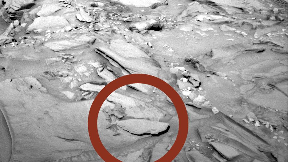 เมื่อ ปี 2014 NASA ได้ทำการส่งรูปภาพกลับมายังโลก ซึ่งภาพนี้ปรากฏให้เห็นว่ามีรูปร่างแปลกประหลาด คล้ายกับกระดูกต้นขาของมนุษย์ นักวิทยาศาสตร์ได้ให้คำอธิบายไว้ว่า รูปร่างที่ผิดปกตินี้ มักเป็นผลมาจากการกัดกร่อนของลมหรือน้ำ ถ้า NASA ค้นพบซากของมนุษย์บนดาวอังคารจริง ก็คงเป็นเรื่องที่น่าเหลือเชื่อ และมีหรือที่ NASA จะไม่แถลงข่าว