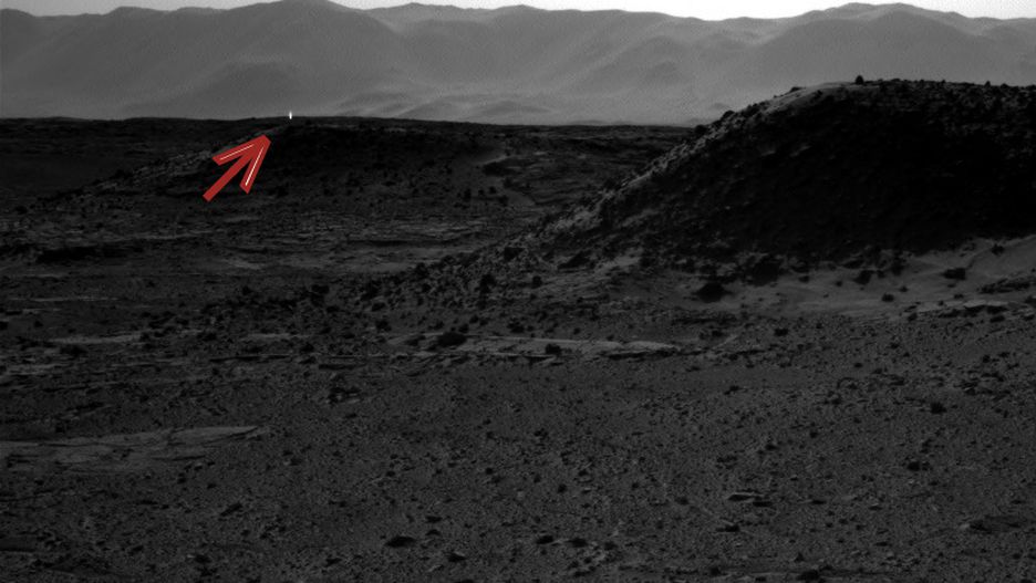NASA ได้ส่งภาพนี้กลับมายังโลกเมื่อปี 2557 ซึ่งแสดงให้เห็นแสงสว่างบนขอบฟ้าของดาวอังคาร และเป็นที่ตื่นเต้นของผู้ที่ศึกษาเรื่องราวของ UFO เป็นอย่างมาก เพราะนี่อาจจะเป็นหลักฐานที่ทำให้เรารู้มากขึ้น เกี่ยวกับอารยธรรมของมนุษย์ต่างดาว แต่ ดั๊ก เอลสัน นักวิทยาศาสตร์นาซ่ากล่าวว่า สิ่งนี้เกิดจากการชนกันของรังสีคอสมิก ซึ่งเป็นผลมาจากอนุภาคพลังงานสูงที่ผ่านอวกาศ