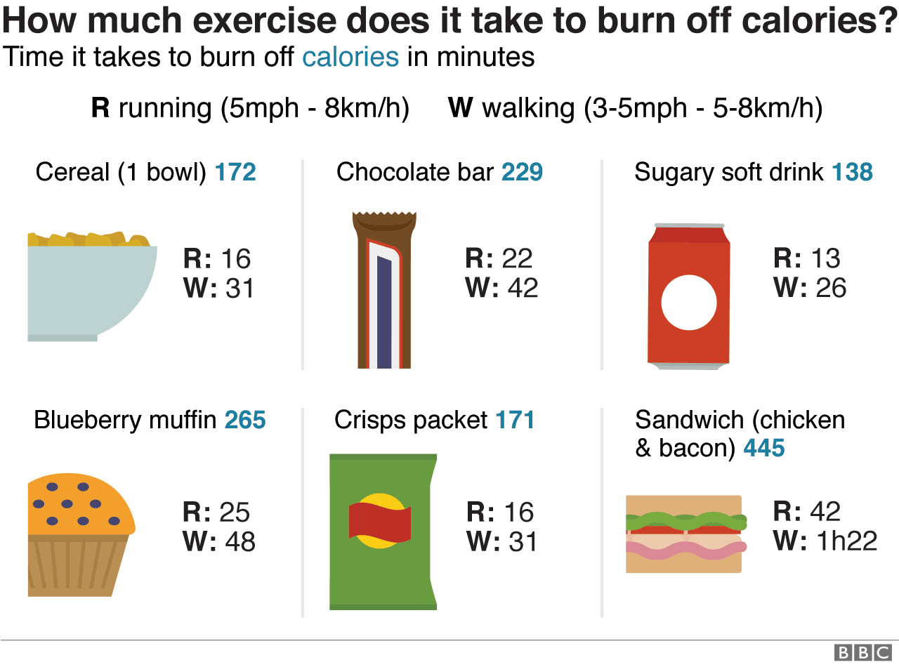 เป็นเรื่องจริงที่ผู้คนส่วนใหญ่ไม่ค่อยสนใจเรื่องค่าของแคลลอรี่กันมากนัก แต่ถ้ามีบางสิ่งมากระตุ้น เชื่อว่าหลายคนต้องตกใจไปตามๆกัน เช่น ถ้าจะบอกว่า มัฟฟิ้นชิ้นเดียวมีแคลลอรี่ทั้งหมด 500 แคล นั่นแปลว่าคุณจะต้องใช้เวลาเกือบชั่วโมงในการนำมันออกจากร่างกายจนหมด ซึ่งต้องบอกเลยว่ามันไม่คุ้มที่จะเสี่ยง คุณจะเอาเวลาเป็นชั่วโมงเพื่อเอาแคลจากการกินช็อกโกแลตไปแค่ชิ้นเดียวหรือไม่? ลองคิดดู