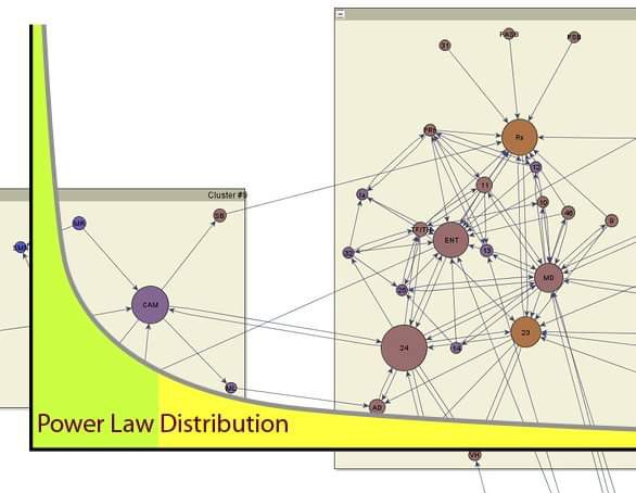 ลักษณะนี้ ทาง network science เรียกว่าเป็นไปตาม “power law distribution” นั่นคือ คนส่วนน้อยเป็นผู้มีบทบาทสำคัญ ในขณะที่คนส่วนใหญ่ไม่ค่อยมีบทบาทเท่าไหร่